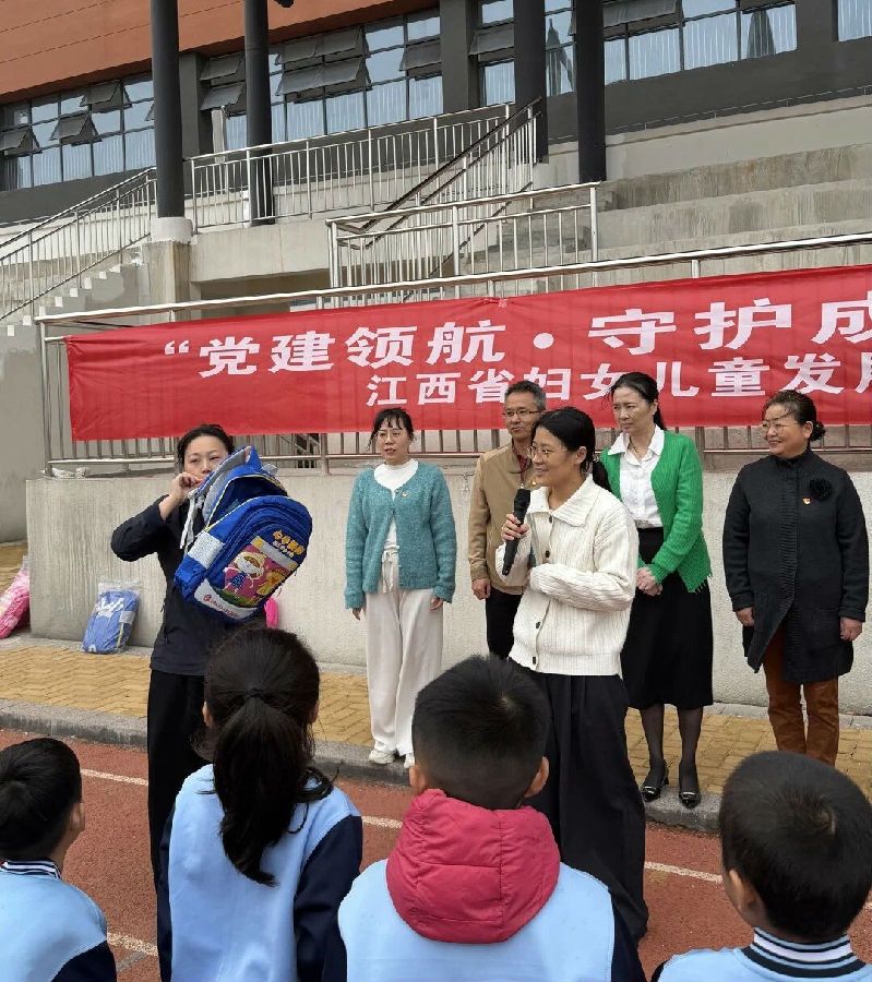 11月10日下午,江西省交易市場(chǎng)協(xié)會(huì)黨支部聯(lián)合江西省婦女兒童發(fā)展基金會(huì)黨支部,在南昌中學(xué)教育集團(tuán)臨江校區(qū)開(kāi)展 “黨建領(lǐng)航?守護(hù)成長(zhǎng)” 兒童安全書(shū)包捐贈(zèng)聯(lián)合黨日活動(dòng),為 53 名兒童送上安全防護(hù)。