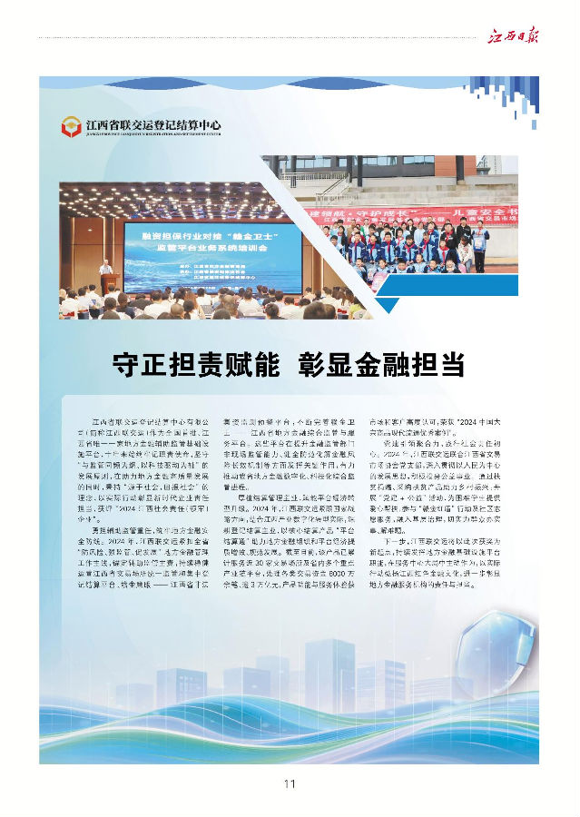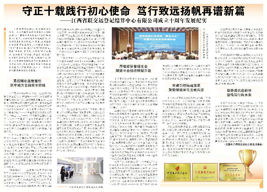 12月3日,江西日?qǐng)?bào)報(bào)道《守正十載踐行初心使命 篤行致遠(yuǎn)揚(yáng)帆再譜新篇 | 江西省聯(lián)交運(yùn)登記結(jié)算中心有限公司成立十周年發(fā)展紀(jì)實(shí)》。