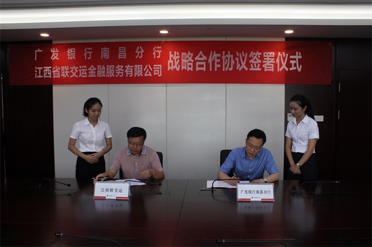2016年8月10日,江西省聯(lián)交運(yùn)金融服務(wù)有限公司(以下簡(jiǎn)稱“江西聯(lián)交運(yùn)”)與廣發(fā)銀行股份有限公司南昌分行(以下簡(jiǎn)稱“廣發(fā)銀行南昌分行”)舉行戰(zhàn)略合作協(xié)議簽約儀式。廣發(fā)銀行南昌分行副行長(zhǎng)趙峰林、公司部總經(jīng)理黃佳歡、營(yíng)業(yè)部總經(jīng)理王海及江西聯(lián)交運(yùn)總經(jīng)理劉祖國(guó)等出席儀式。