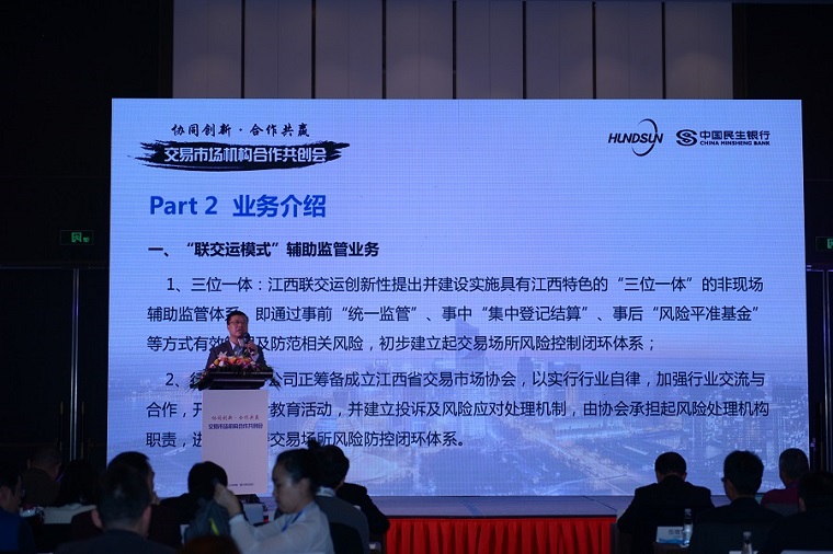 公司并于2017年3月20日全資注冊(cè)成立了江西聯(lián)交運(yùn)基金管理有限公司、于2017年7月7日牽頭組織成立了江西省交易市場(chǎng)協(xié)會(huì)且擔(dān)任首任會(huì)長(zhǎng)單位。至此,江西聯(lián)交運(yùn)于成立之初即創(chuàng)新提出的“事前——統(tǒng)一監(jiān)管”、“事中——集中登記結(jié)算”、“事后——風(fēng)險(xiǎn)平準(zhǔn)基金”及行業(yè)自律組織等“三位一體+行業(yè)協(xié)會(huì)”的交易場(chǎng)所非現(xiàn)場(chǎng)輔助監(jiān)管風(fēng)險(xiǎn)控制閉環(huán)體系已正式搭建完成,成為目前國(guó)內(nèi)領(lǐng)先的集統(tǒng)一監(jiān)管、登記結(jié)算和多種服務(wù)于一體的輔助監(jiān)管運(yùn)營(yíng)機(jī)構(gòu),建設(shè)出地方金融輔助監(jiān)管的“江西樣板”工程。
