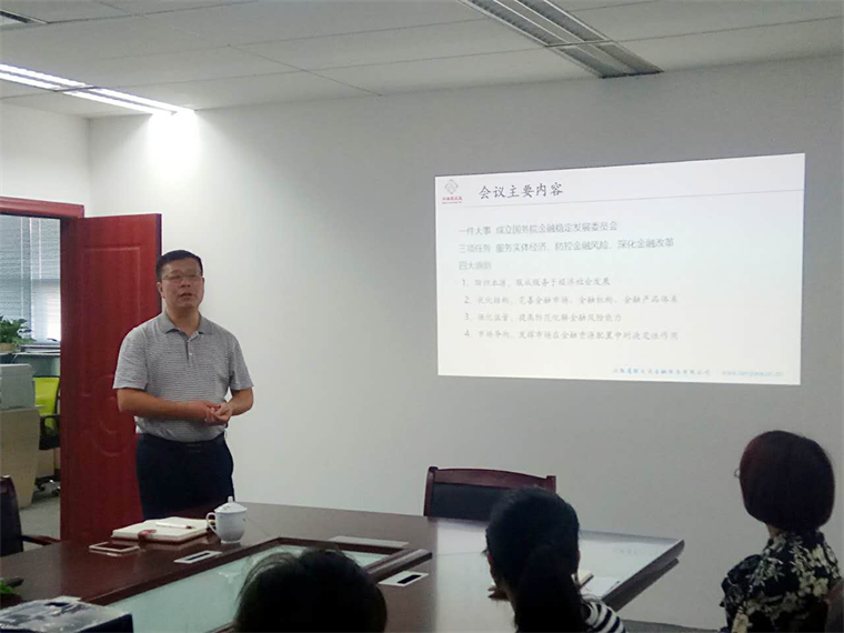 2017年7月20日,江西省聯(lián)交運(yùn)金融服務(wù)有限公司(以下簡(jiǎn)稱江西聯(lián)交運(yùn))總經(jīng)理劉祖國(guó)主持召開專題會(huì)議,認(rèn)真學(xué)習(xí)并傳達(dá)全國(guó)金融工作會(huì)議精神,并結(jié)合江西聯(lián)交運(yùn)實(shí)際研究貫徹落實(shí)意見(jiàn)。