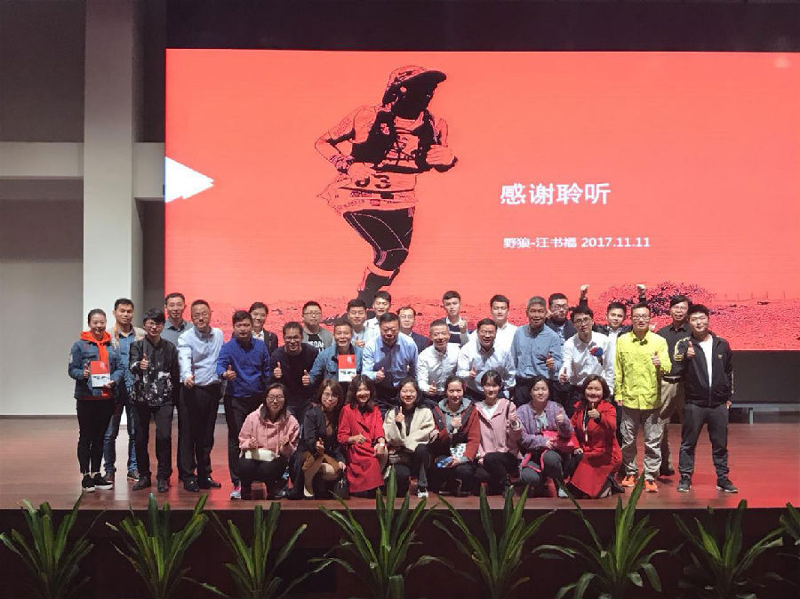 汪書福董事長(zhǎng)結(jié)合心理學(xué)基本理論和管理學(xué)基礎(chǔ)知識(shí),以獨(dú)特的視角、風(fēng)趣幽默的演說(shuō)和豐富的人生閱歷,從如何快速學(xué)習(xí)、深度學(xué)習(xí)、尋找規(guī)律、凝聚共識(shí)、識(shí)人善任、及時(shí)激勵(lì)等6個(gè)方面闡述了快速學(xué)習(xí)的方法和建設(shè)高效團(tuán)隊(duì)的內(nèi)涵。其中重點(diǎn)分享了他在1年不到的時(shí)間內(nèi)攻克120公里戈壁挑戰(zhàn)賽,并帶領(lǐng)團(tuán)隊(duì)獲得了歷史最好成績(jī)的傳奇經(jīng)歷,現(xiàn)場(chǎng)一次次爆發(fā)出熱烈的掌聲。汪書福董事長(zhǎng)超強(qiáng)的意志力和個(gè)人魅力深深打動(dòng)了在場(chǎng)所有聽(tīng)眾,其著作《誰(shuí)能天生就會(huì)跑》備受推崇,講座結(jié)束后立即被一搶而空,并自覺(jué)排隊(duì)向董事長(zhǎng)索要簽名。