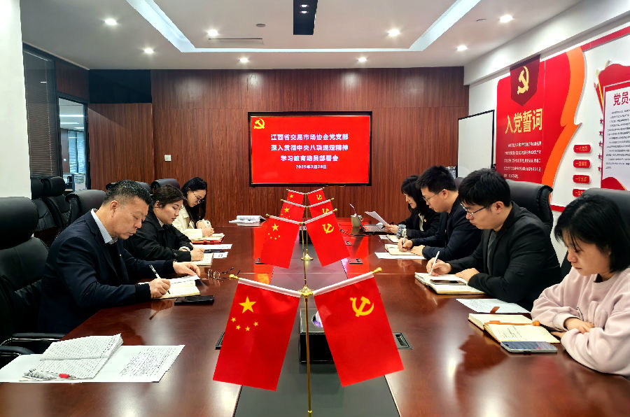 為深入學習貫徹黨的二十屆三中全會精神,準確把握全會深刻內(nèi)涵,明確目標任務。7月30日,江西省交易市場協(xié)會黨支部召開學習宣傳貫徹黨的二十屆三中全會精神專題會議,協(xié)會執(zhí)行會長劉祖國同志主持會議并講話,支部全體黨員、發(fā)展對象、入黨積極分子及省聯(lián)交運公司部門負責同志一同參會。