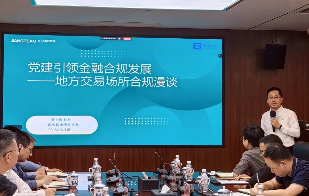 隨后,蔣秀海律師以《黨建引領金融合規(guī)發(fā)展——地方交易場所合規(guī)漫談》為題進行專題分享交流,對地方交易場所行業(yè)相關法律法規(guī)和監(jiān)管政策進行專業(yè)透析解讀,對地方交易場所發(fā)展定位和方向提出見解與思考,重點對地方交易場所如何加強合規(guī)風控建設以進一步筑牢安全穩(wěn)定經(jīng)營發(fā)展防線分享了諸多具有較強針對性和實用性的意見和建議。在認真聆聽蔣秀海律師分享后,線上、線下參會單位通過現(xiàn)場提問及線上咨詢等方式積極參與交流研討,蔣秀海律師一一進行了專業(yè)詳細的解答。參會代表紛紛表示,本次會議組織工作嚴謹周密,黨建學習和交流研討內(nèi)容兼具專業(yè)深度與實踐價值,會議不僅有效拓展了行業(yè)視野、創(chuàng)新了發(fā)展思維,更為交易場所搭建了高規(guī)格的交流合作平臺。