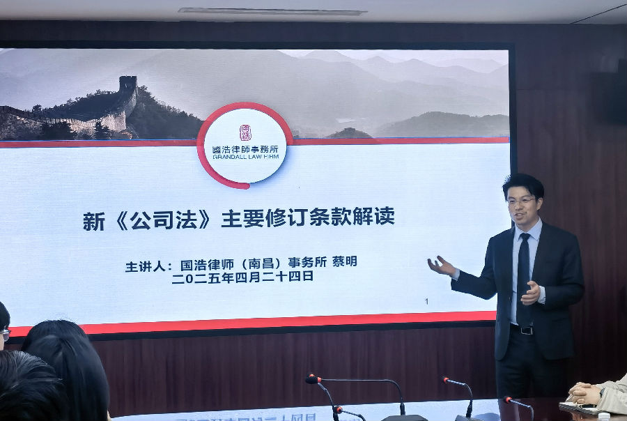 4月24日,公司舉辦新《公司法》主要修訂條款解讀專題培訓會議,邀請到國浩律師(南昌)事務所黨支部書記、管理合伙人蔡明律師進行專題授課,公司董事、總經(jīng)理劉祖國出席會議。