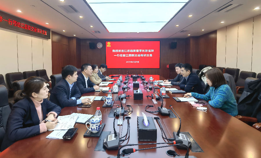 2月9日,江蘇交易場(chǎng)所登記結(jié)算有限公司董事長(zhǎng)陳侃曄一行蒞臨江西聯(lián)交運(yùn)調(diào)研交流,公司董事、總經(jīng)理劉祖國(guó)及相關(guān)部門(mén)負(fù)責(zé)同志現(xiàn)場(chǎng)接待,雙方進(jìn)行了座談交流。